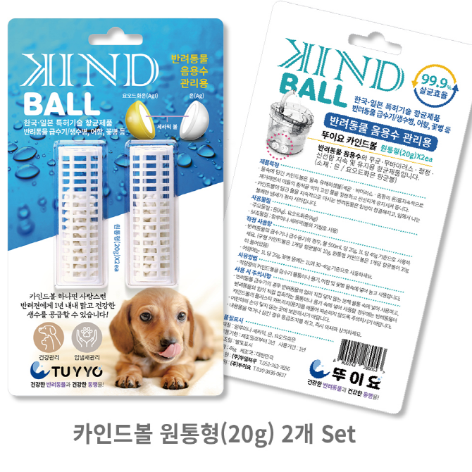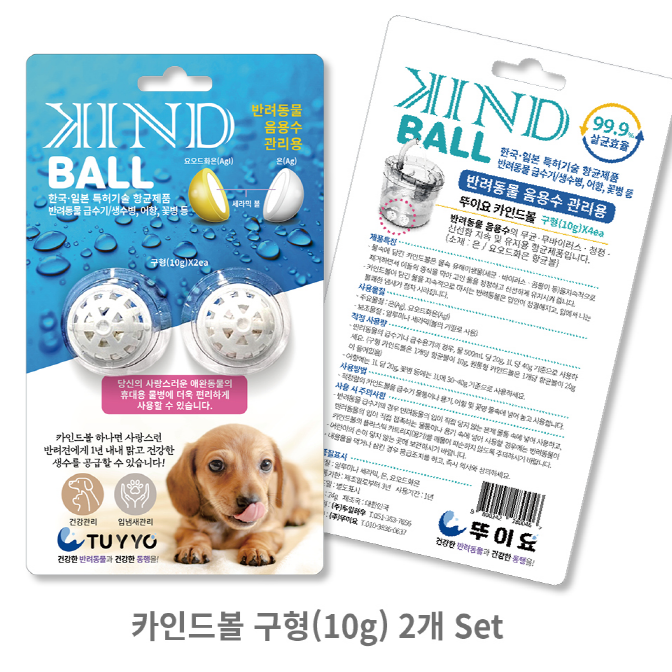 카인드볼은 번거로운 물관리 물때 이 방법 저 방법 다써도 항상 걱정많은 반려동물 식수 문제를 해결해줄 새로운 대안 입니다.. 정수기는 먼지나 이물질은 필터링 하지만 아이들 침이나 곰팡이,세균을 막을수는 없습니다!! 제품에 표기된 비율표 대로 카인드볼을 사용하시면 항상 신선한 물 상태로 유지하며.. 물때 예방에도 도움이 됩니다.또한 비율표 대로 카인드볼 과 물보충시 7 일에서 10 일후 반려동물의 입냄새가 확연히 줄어드는 효과를 만나 보실수 있습니다..카인드볼을 비율표에 나와 있는 방법으로 꾸준히 사용시 대략 6개월 정도 효과가 유지됩니다..6개월 전이라도 물때가 생기거나 아이들 입냄새가 심해지면 새제품 으로 교체 하시길 권장 드립니다.. 우리 아이들이 모두 건강하게 생활 할수있도록 대한민국 특허받은 카인드볼을 만나보세요!!